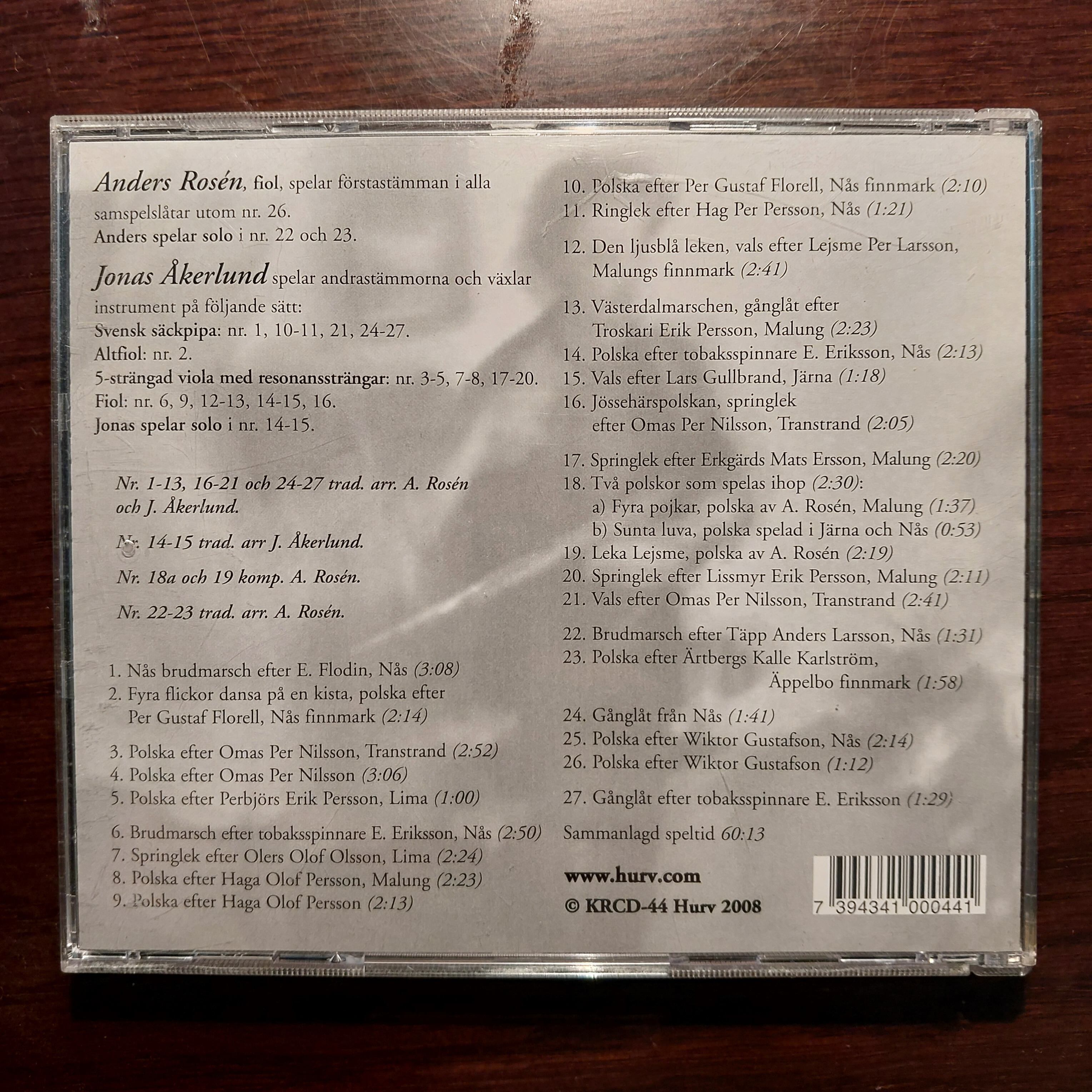 演奏者はフィドルを中心に様々な楽器を演奏するJonas Åkerlundとその師匠、Anders Rosénという最高の組み合わせ。Jonasはギターなども演奏する奏者ですが、これらのアルバムではフィドルとセックピーパ(スウェーデンのバグパイプ)の演奏にとどめています。